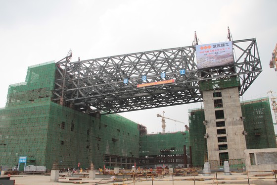 昨日,由武漢建工集團(tuán)承建的武漢市行政服務(wù)中心(市民之家)工程成功地進(jìn)行了鋼結(jié)構(gòu)連廊的整體提升施工,將這個(gè)寵然大物提升到33米的安裝位置。該鋼結(jié)構(gòu)的大跨度、大噸位、大體積整體提升創(chuàng)湖北省乃至中南地區(qū)鋼結(jié)構(gòu)吊裝施工首例,堪稱(chēng)“華中第一提”。據(jù)悉,新建的武漢市行政服務(wù)中心下個(gè)月結(jié)構(gòu)封頂,明年5月竣工。