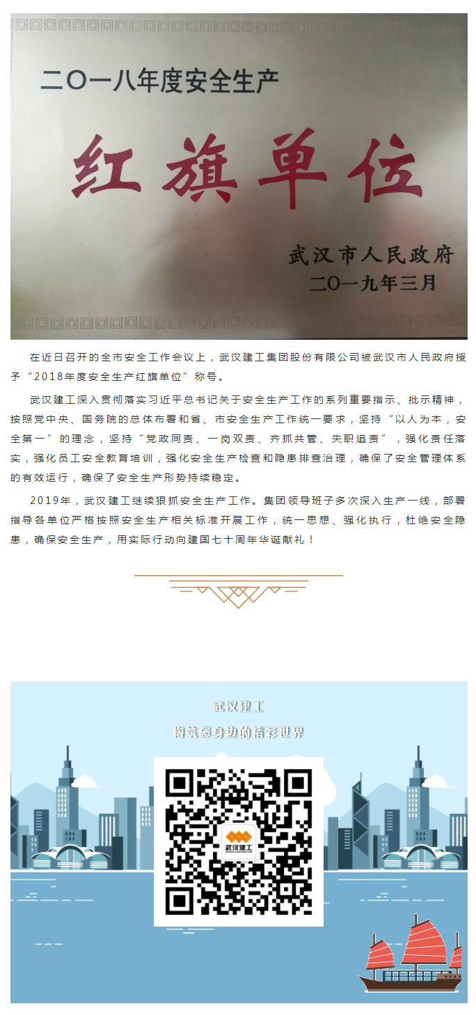 武漢建工被市政府授予 “2018年度安全生產(chǎn)紅旗單位”稱號